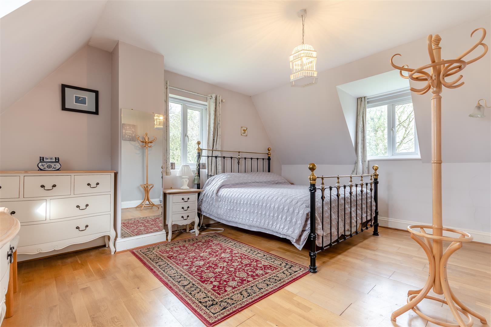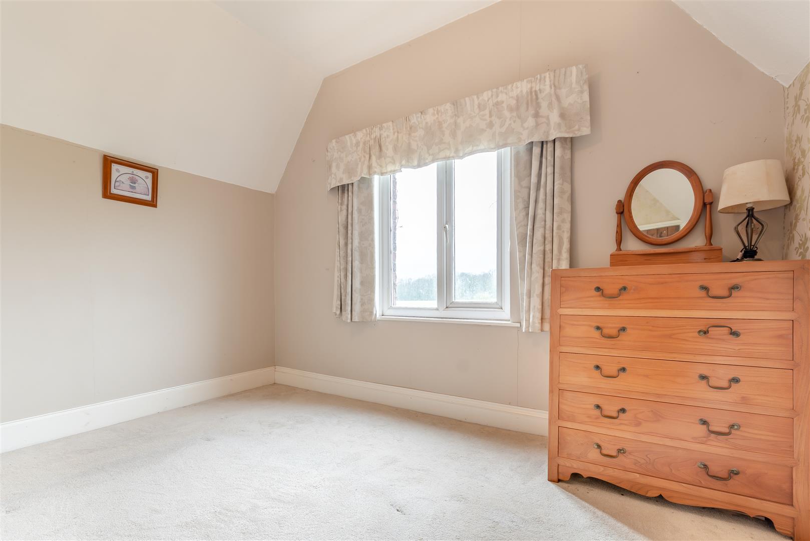 Landing - Airing cupboard with hot water tank and shelving, further cupboard with slatted shelving, front and side aspect windows with the front having a superb unspoilt outlook over surrounding fields and farmland.