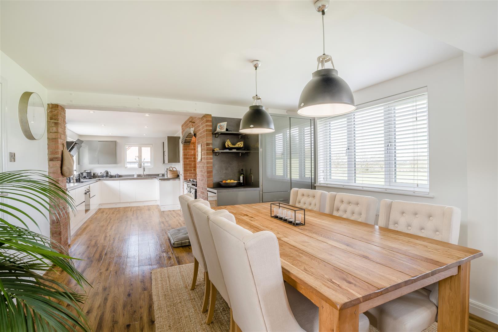 Dining Area: Wine cooler, storage units, two single radiators, inset spotlighting, two rear aspect windows with views over fields and countryside towards the Malvern Hills.