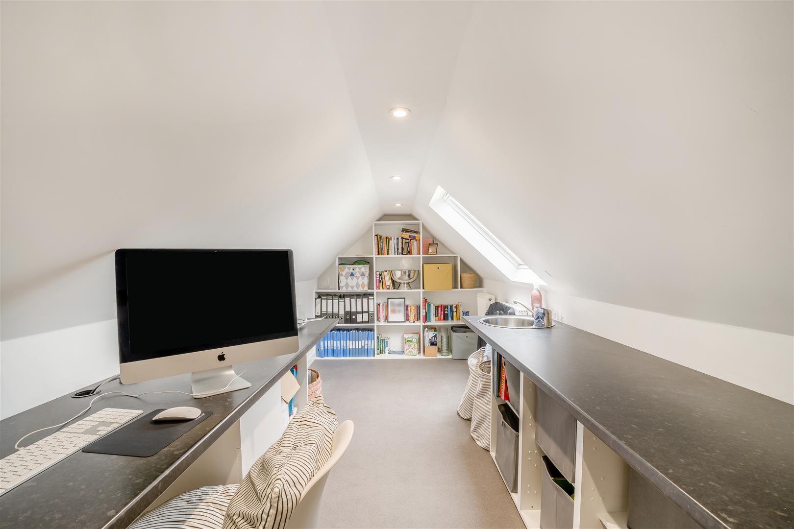 Study/Office - 4.88m x 2.13m (16'00 x 7'00) - Approximately 6 foot ceiling height, built-in worktops, storage below, stainless steel sink with mixer tap, eaves storage space, inset spotlighting, rear aspect velux roof light.