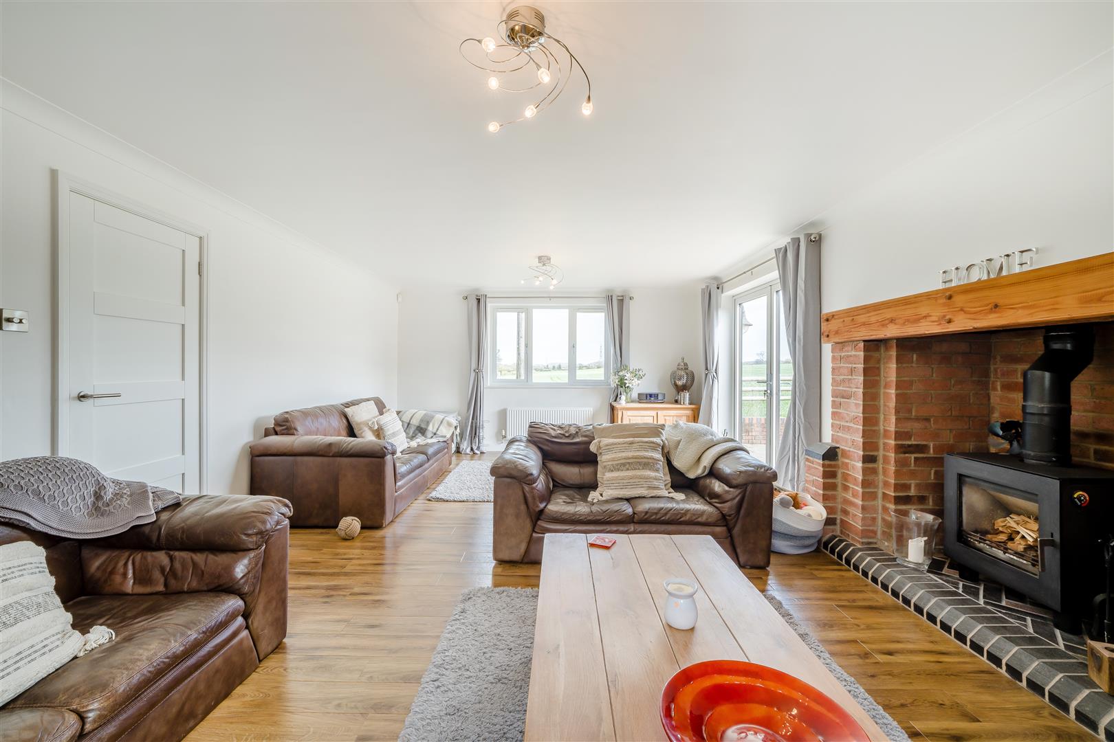 Lounge - 7.01m x 4.19m (23'00 x 13'09) - Feature cast iron log burner with exposed brick surround and hearth, wooden mantel, tv point, two double radiators, telephone point, front and rear aspect windows with lovely views over surrounding fields towards the Malvern Hills, french doors to the side patio and gardens.