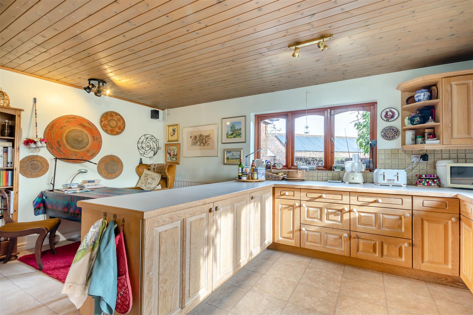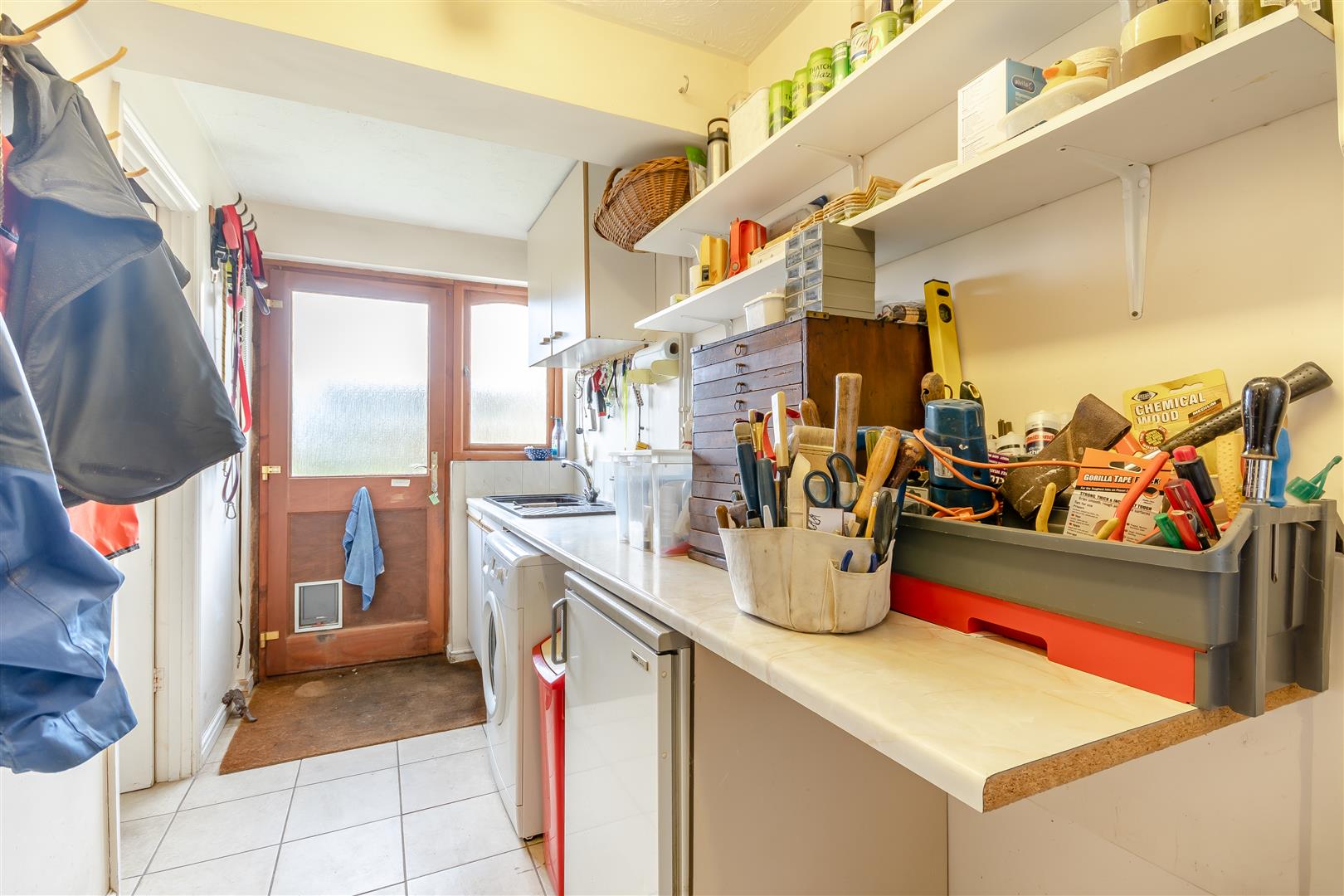 Utility - 4.14m x 1.60m (13'7 x 5'3) - One and a half bowl sink unit with single drainer, base and wall units with laminated worktops and tiled splashbacks, tiled flooring, space for further appliances, plumbing for washing machine, single radiator, side aspect frosted window, half glazed door leading to the gardens.