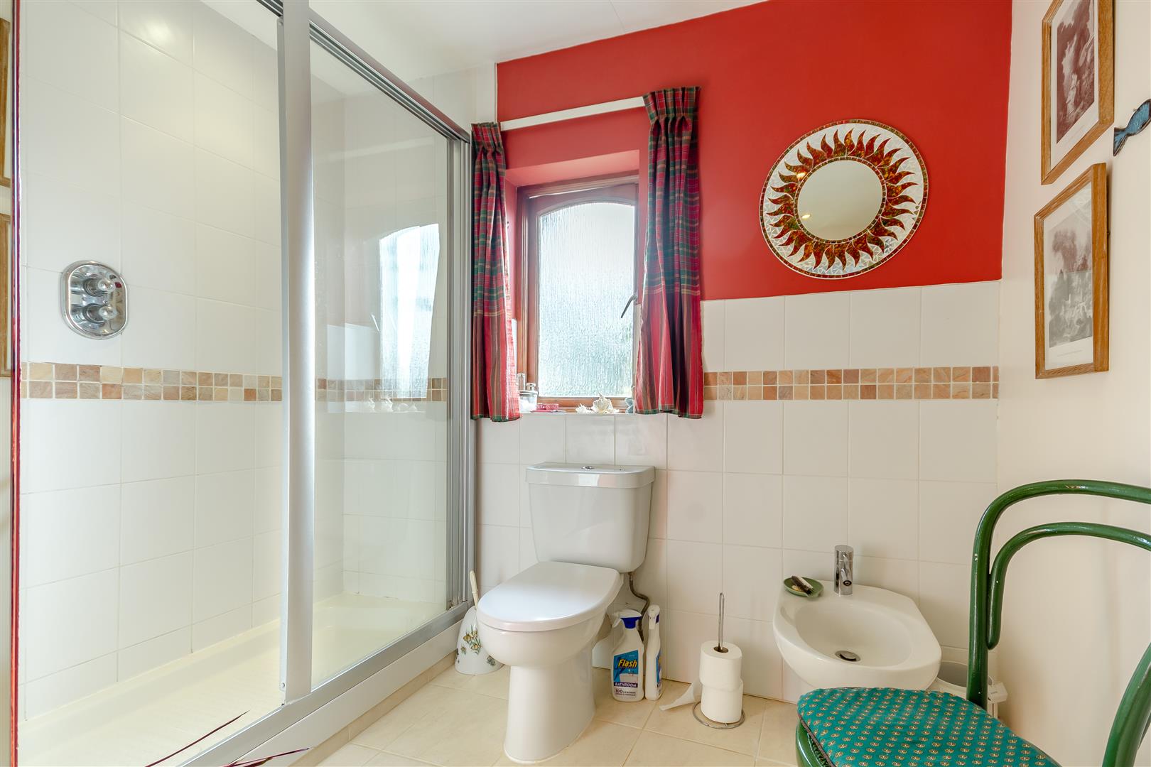 Bathroom - 2.79m x 2.26m (9'2 x 7'5) - Panelled bath with mixer tap, separate walk-in single shower accessed via concertina glazed screen with inset Mira shower system, WC, bidet and wash hand basin with cupboard below, single radiator, front aspect frosted window.
