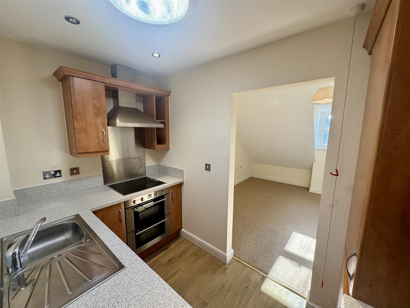 Accommodation - Accommodation comprising entrance hallway with airing cupboard and storage cupboard, double bedroom, living room, fitted kitchen and bathroom to feature shower over bath.