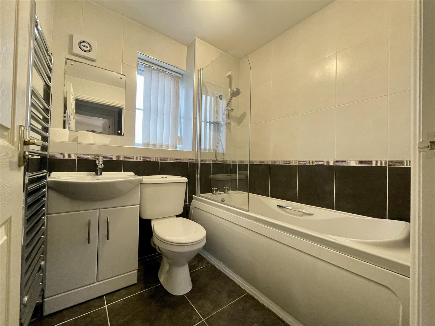 Accommodation - Accommodation comprising cloakroom, modern fitted kitchen, spacious living room, both bedrooms have built in storage and the modern bathroom has a shower over the bath.