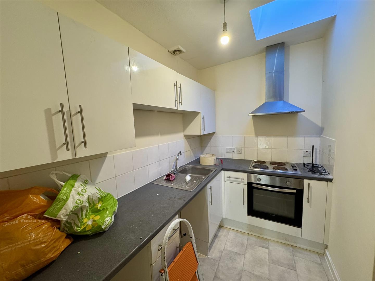 Accommodation - Accommodation comprising fitted kitchen, living room leading through to the bedroom and bathroom featuring shower over bath.
