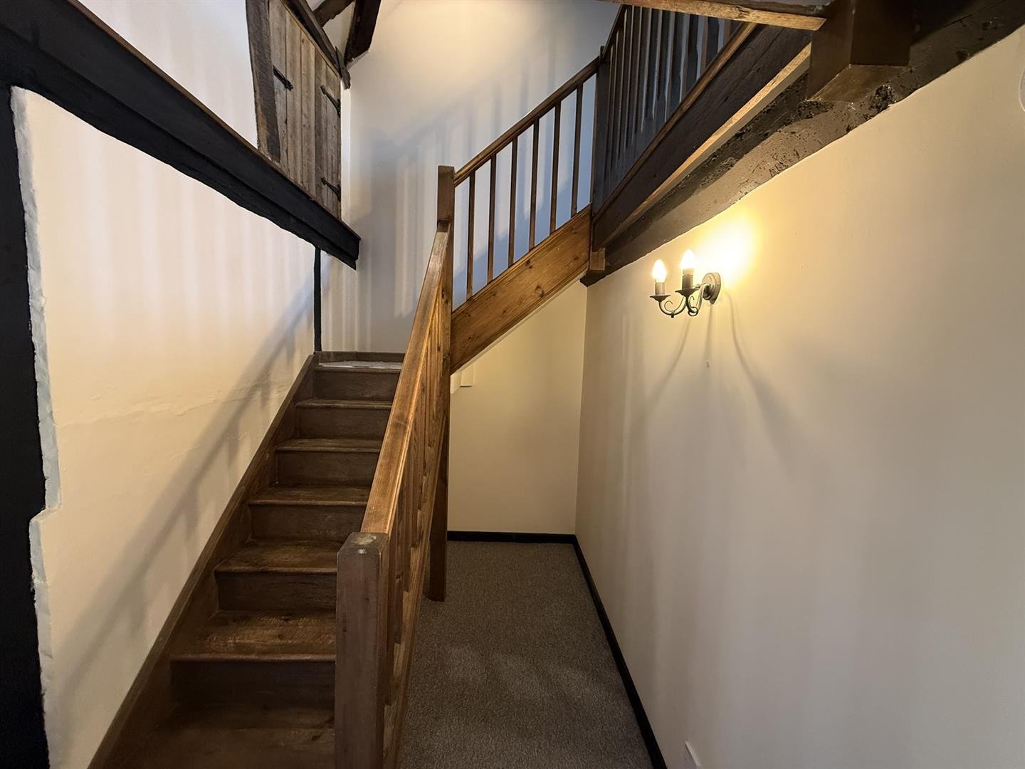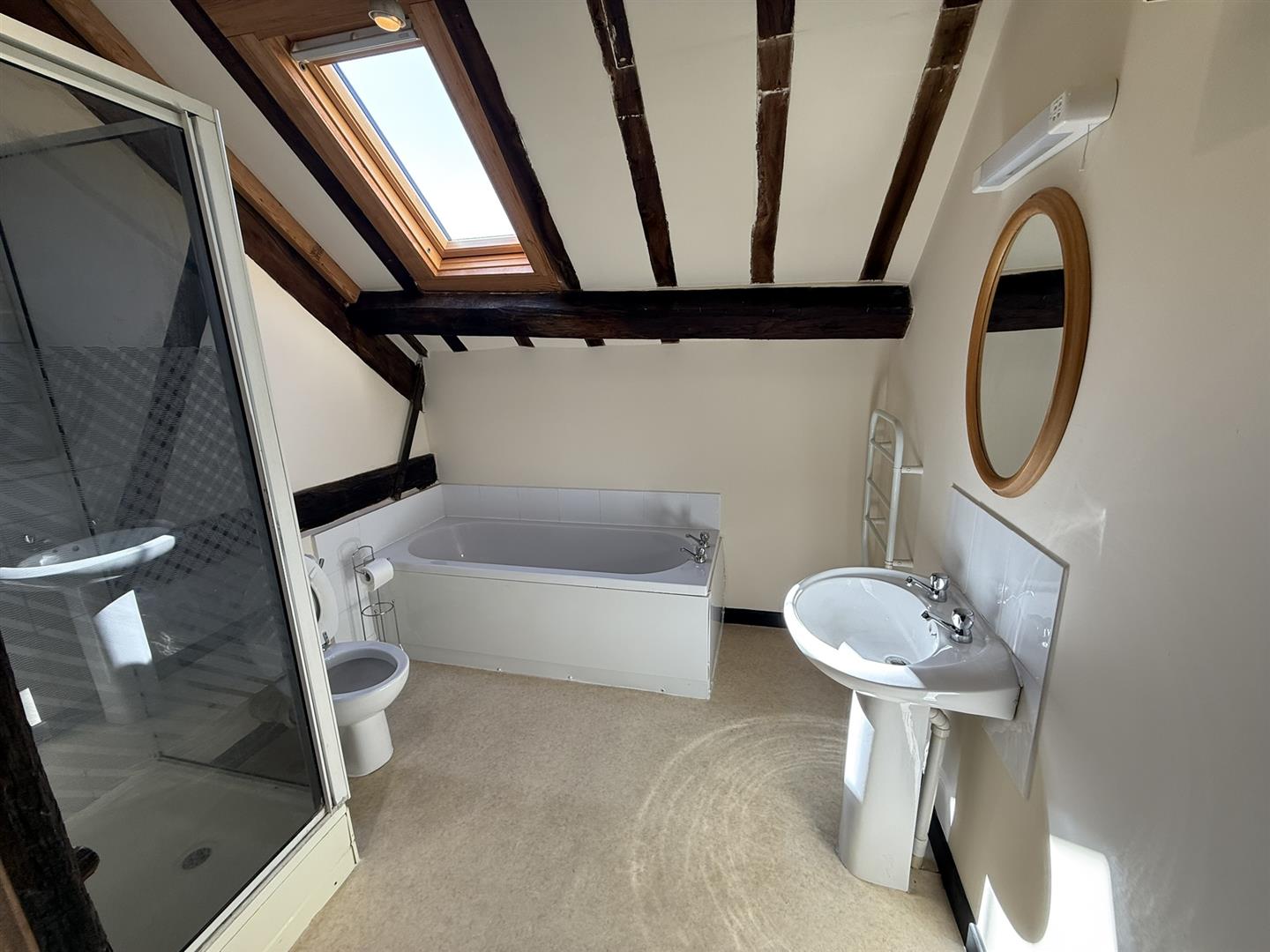 The delightful galleried bedroom is a true highlight, showcasing lovely beams and exquisite woodwork that add to the apartment's charm. This inviting space offers a peaceful retreat, ideal for restful nights. The property also includes a well-appointed bathroom, with bath and separate shower cubicle.